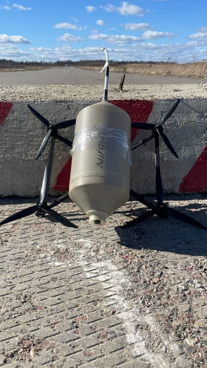 The 10-inch fiber-optic FPV drone was launched and successfully flew 5 km carrying a warhead.