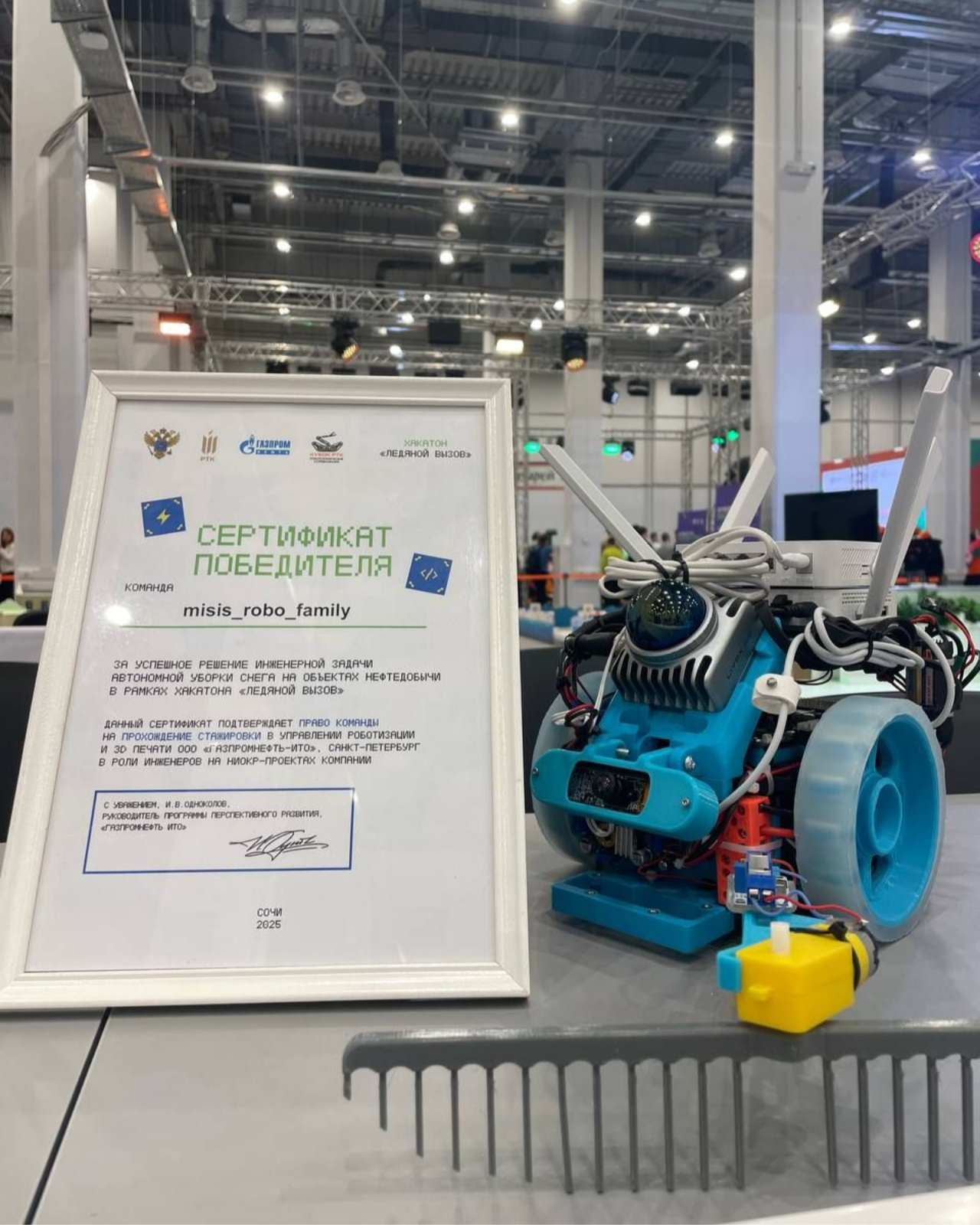Команда «misis_robo_family» под руководством руководителя по робототехнике ООО «АСФ-Инновации» Герарда Исмагилова стала победителем, продемонстрировав успешное решение инженерной задачи от компании «Газпромнефть» по автономной уборке снега на нефтедобывающих объектах.